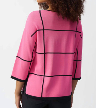 Joseph Ribkoff - Joseph Ribkoff Two-tone Plaid 3/4 Sleeves Lightweight Sweater Top