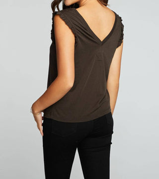 Chaser - Recycled Vintage Jersey Double V Ruffle Muscle Tank