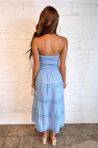 Main Strip - Tube Smocking Lace Boarder Midi Dress