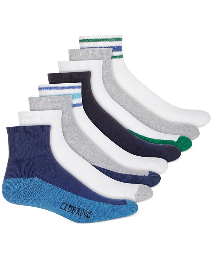 Super comfortable and sporty| these Club Room ankle socks come in a variety of colors and designs.| 8-pack| Ankle length| | Polyester/cotton/spandex| Machine washable