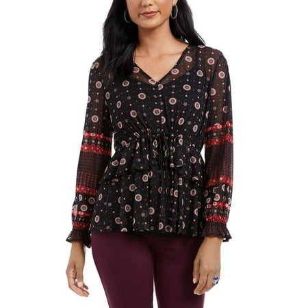 The Style & Co Women's Tie Waist Peasant Blouse is a chic and stylish top that brings a touch of bohemian flair to any wardrobe. Designed with a flattering tie waist, this blouse accentuates the waistline and provides a comfortable fit. Crafted from lightweight fabric, it features a bold contrast print that intricately captures attention while allowing for breathability. Perfect for casual outings or dressed-up occasions, this blouse is versatile enough to be paired with jeans or skirts. The relaxed peasant design offers ease of movement, making it ideal for all-day wear. With its thoughtful details and fashion-forward design, this blouse embodies the essence of modern femininity.