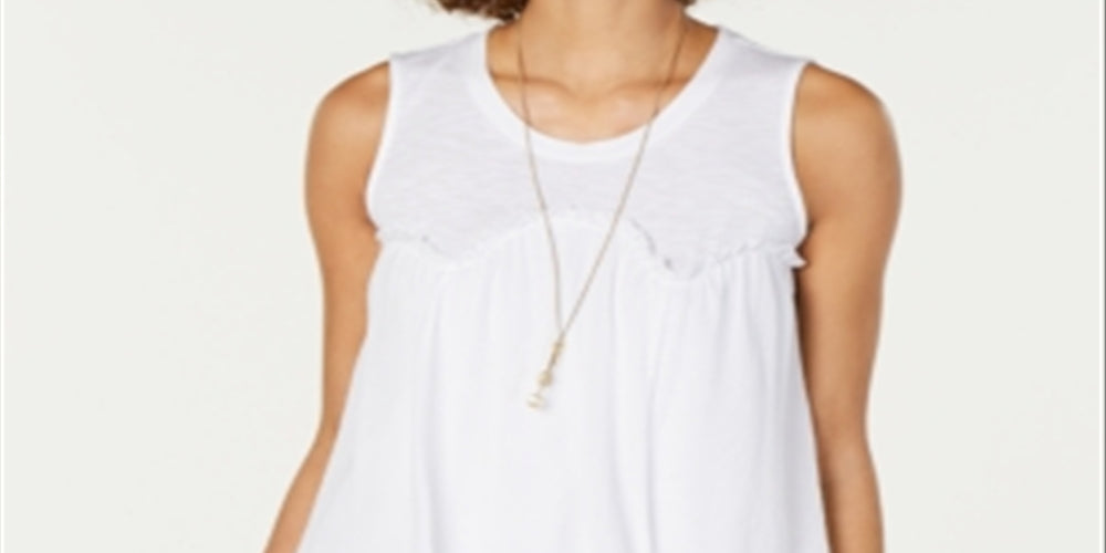 Swingy in front and straight in back| Style & Co's mixed media top combines knit and woven fabric to super stylish effect.| Relaxed fit; hits at hip| Due to generous sizing| we suggest sizing down for the perfect fit| Crewneck