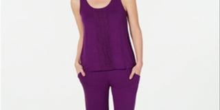 Charter Club Women's Lace Trim Pajama Top & Bottoms Set Purple Size Medium