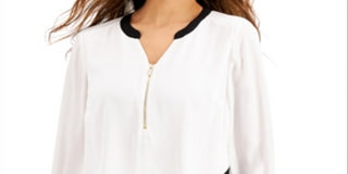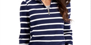 Charter Club Women's Cotton Striped Zip Neck Top Blue Size Petite L