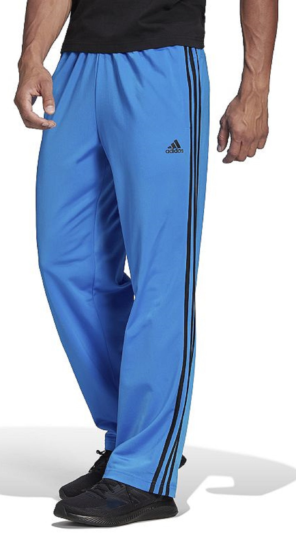 adidas Men's Primegreen Essentials Warm Up Open Hem 3 Stripes Track Pants Blue Size Medium