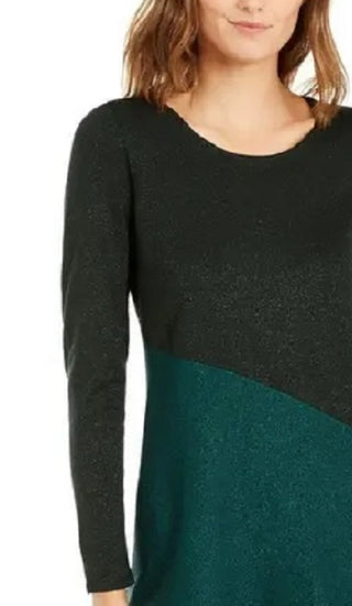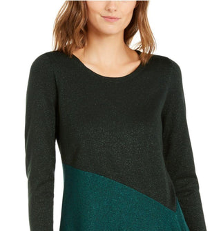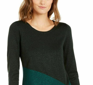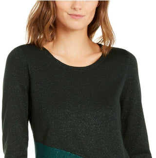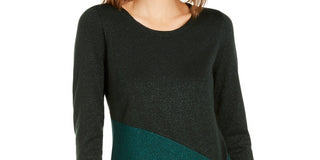Alfani Women's Asymmetrical Colorblocked Sweater Emerald Pine Size Small