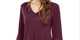 Alfani Women's Asymmetrical Bell Sleeve Top Wine Size Large