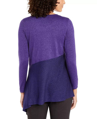 Alfani Women's Asymmetrical Colorblocked Shimmer Top Purple Size Medium
