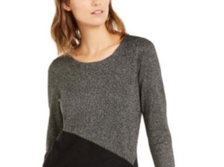 Alfani Women's Asymmetrical Colorblocked Shimmer Top Black Size XX Large