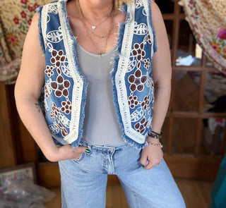 Pol - Wavy Pattern Crochet Detail Denim Pants
