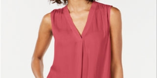 Alfani Women's Blouse V Neck Tank Top Solid Pleat Pink Size Large
