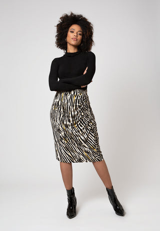 Leota Women's Kathy Ruched Zebra Print Skirt Black