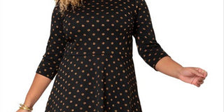 Leota Women's Katherine Metallic Print Dress Black Size 1X