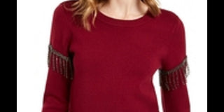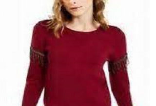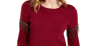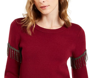 Alfani Women's Embellished Fringe Sweater Wine Size Small