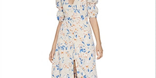BCBGeneration Women's Floral V Neck a Line Dress White Size 12