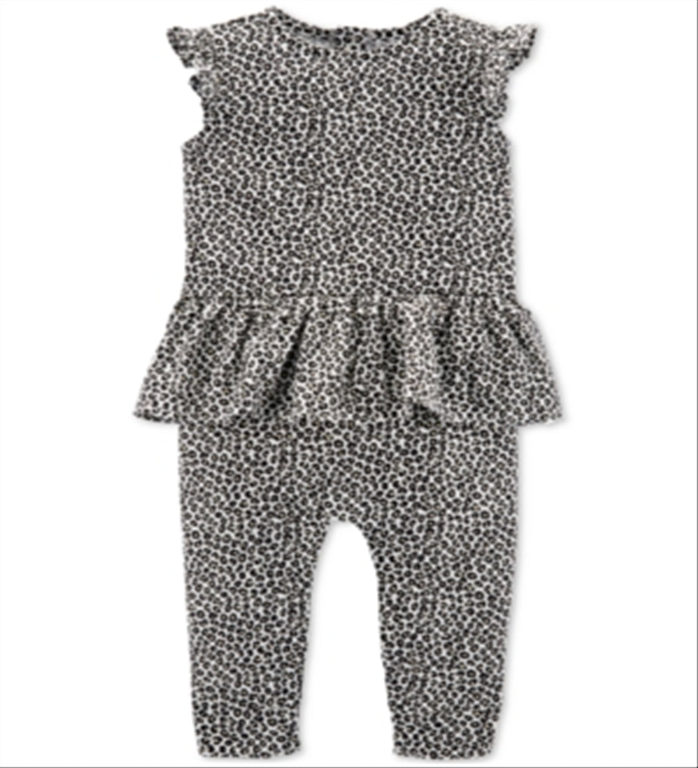Carter's Baby Girl's Leopard-Print Cotton Jumpsuit Grey Size Newborn