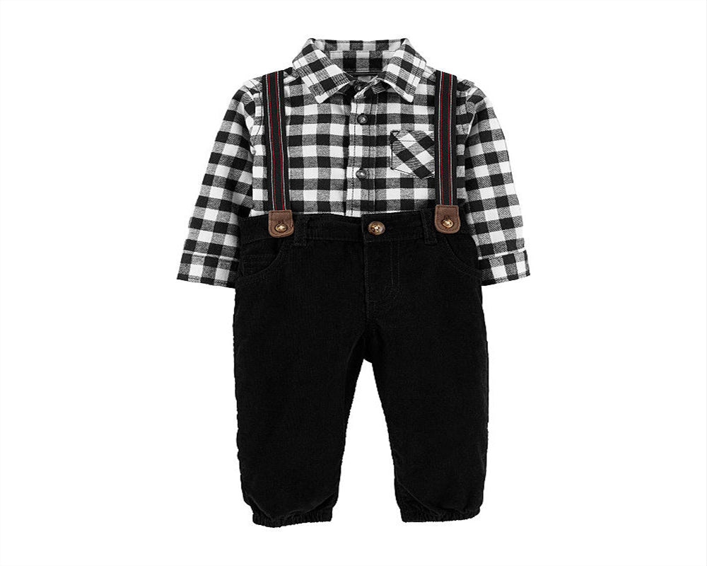 Carter's Boy's Infant Buffalo Check Button up Bodysuit Set Black Size 3MOS