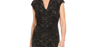 Connected Women's Cap Sleeve Metallic Floral Print Sheath Dress Black Size 16