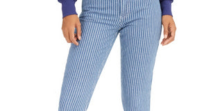 Dickies Junior's Striped Skinny Fit Cuffed Jeans Blue Size 1