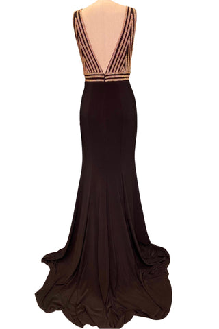 Jovani - Feather Skirt Illusion Dress