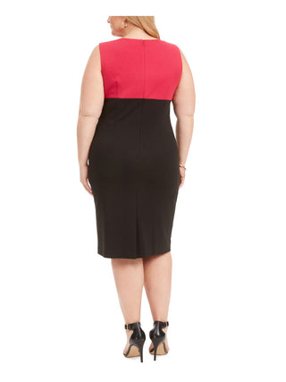 Kasper Women's Color Block Sleeveless Jewel Neck Knee Length Sheath Wear to Work Dress Pink Size 22W
