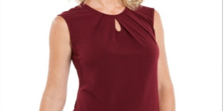 Kasper Women's Cap Sleeve Solid Keyhole Moss Crepe Blouse Red Size Small