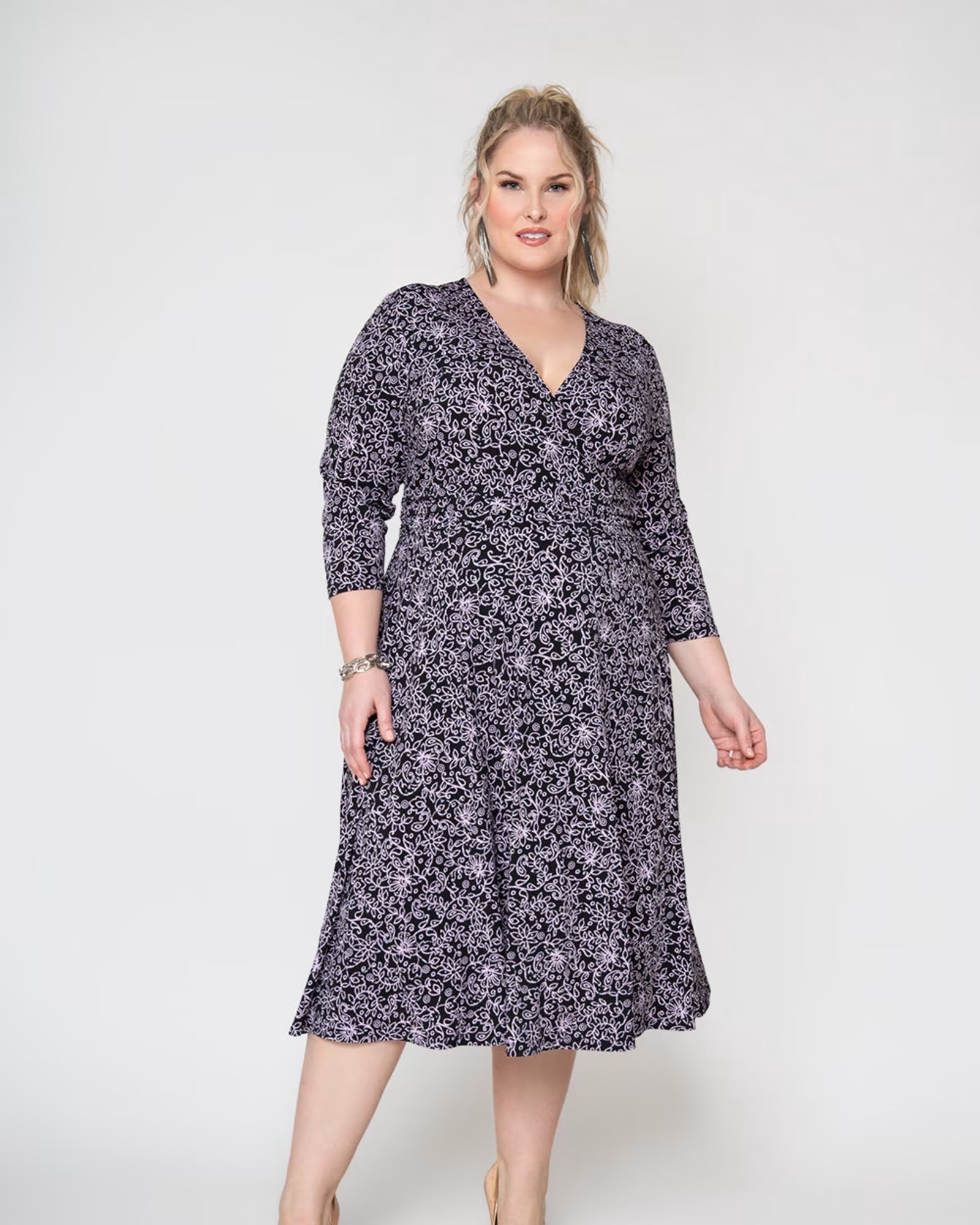 Leota Women's Alena Poplin Wrap Dress Black Size 3X