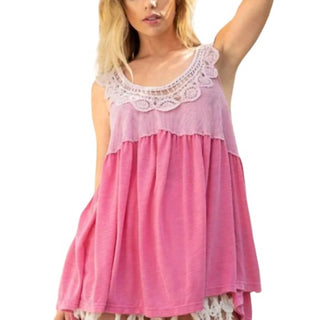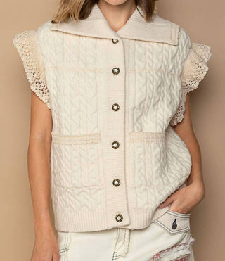 Pol - Crochet Button Down Lace Trim Sweater Vest