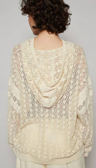 Pol - Crochet Hoodie Sweater With Contrasting Pocket Charcoal