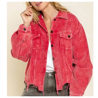Pol - Contrast Quilt Panel Corduroy Jacquard Jacket