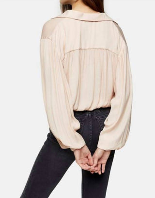 Topshop - Dotted Sheer Chiffon Ruffle Waist Tie Blouse