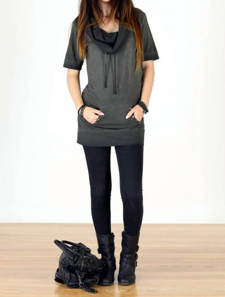 Tough Luv - Cotton Short Sleeve Cowl Neck Tunic Top