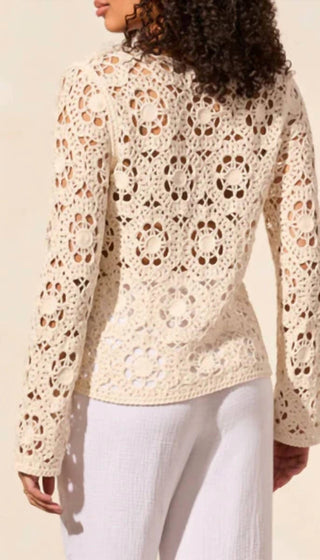 Tribal - Fancy Crochet V-neck With Bell Sleeve Sweater - Plus