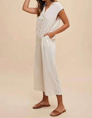 Anniewear - Cotton Guaze Button Down Jumpsuit
