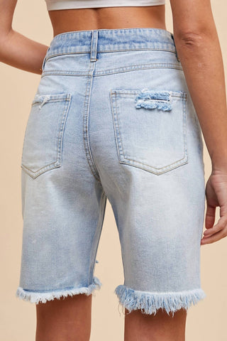 Anniewear - Distressed Rigid Bermuda Denim Shorts