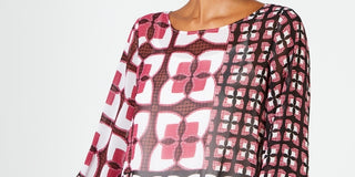 Alfani Women's Pink Patterned 3/4 Sleeve Jewel Neck Top Pink Size Petite Medium