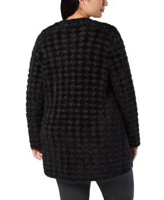 Alfani Women's Plus Eyelash Yarn Printed Cardigan Sweater Black Size 0X