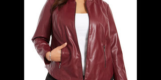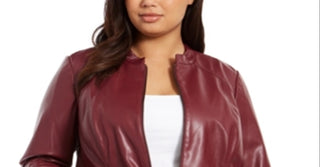 Alfani Women's Plus Faux Leather Jacket Wine Size 0X