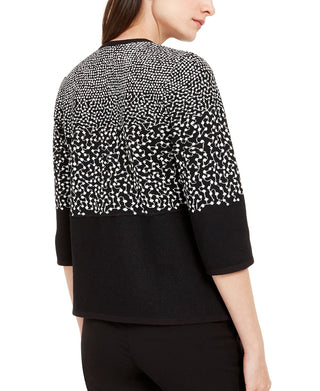 Alfani Women's Printed Asymmetric Open Front Cardigan Black Size Petite