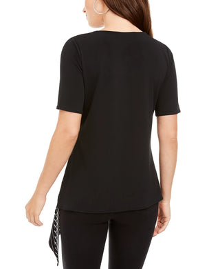 Alfani Women's Printed Asymmetrical Top Black Size Large