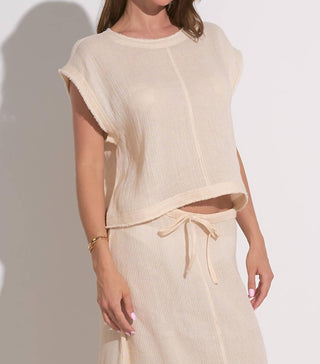 Elan - CREWNECK CAP SLEEVE TWIST TOP