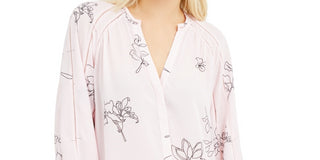 Alfani Women's Printed Inset Detail Blouse Pink Size Medium