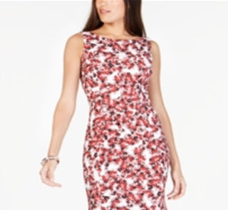 Alfani Women's Printed Jewel Neck MIDI Mermaid Dress Red Size 14