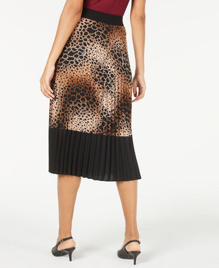 Alfani Women's Printed Pleated MIDI Skirt -Brown Size Petite XL