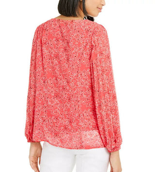 Alfani Women's Printed Pleated-Sleeve Top Pink Size Small