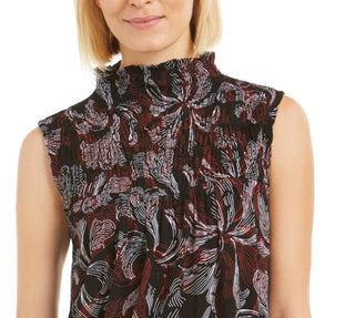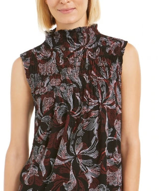 Alfani Women's Printed Smocked Mock-Neck Top Red Size Medium