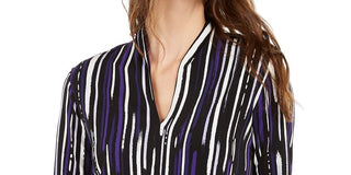 Alfani Women's Printed Split-Neck Tunic Top Purple Size Small