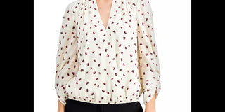 Alfani Women's Printed Surplice Top Beige Size X-Small
