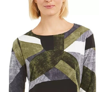 Alfani Women's Printed Swing Top Grey Size X-Large