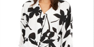 Alfani Women's Printed Tie Front Blouse White Size XX-Large